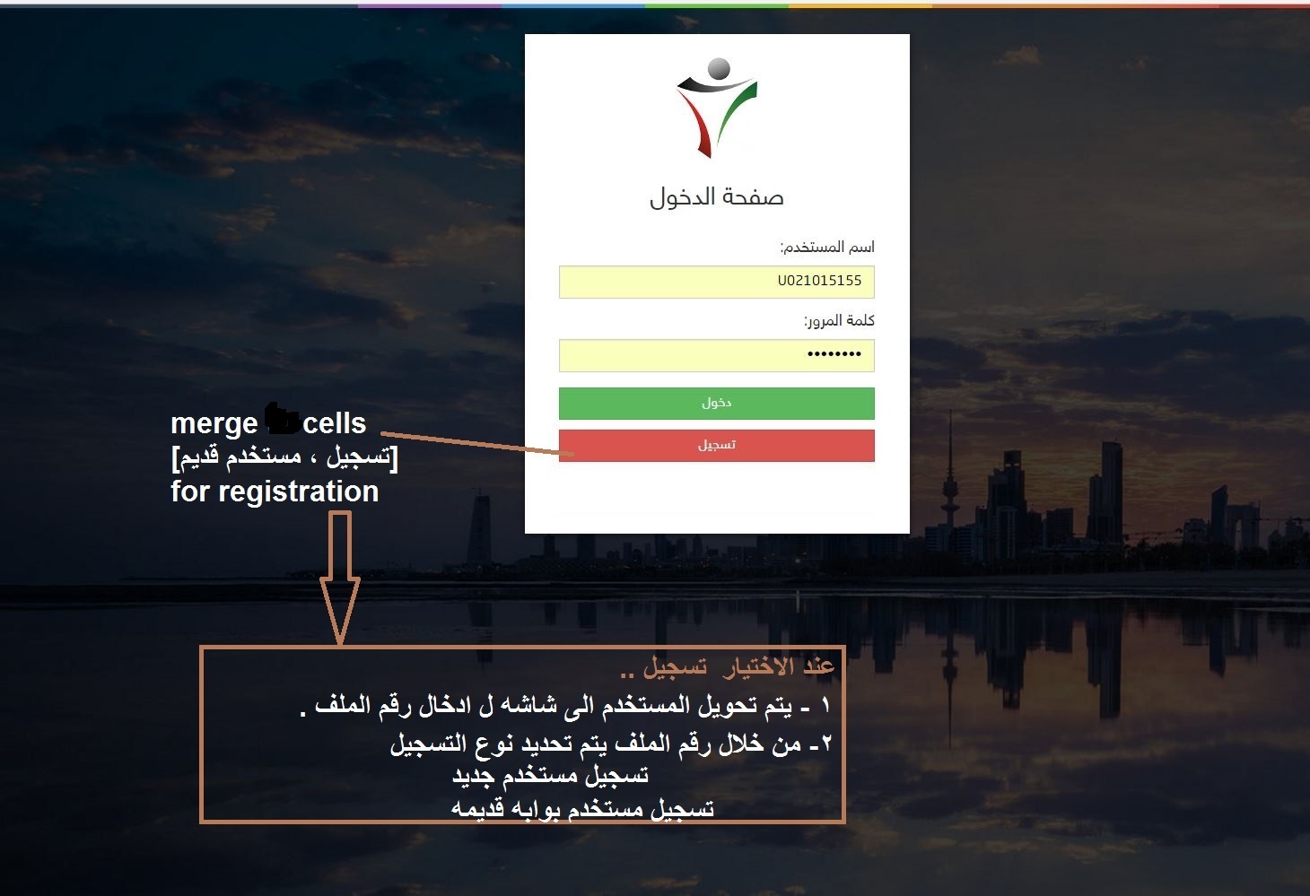 login merger to button for registration
